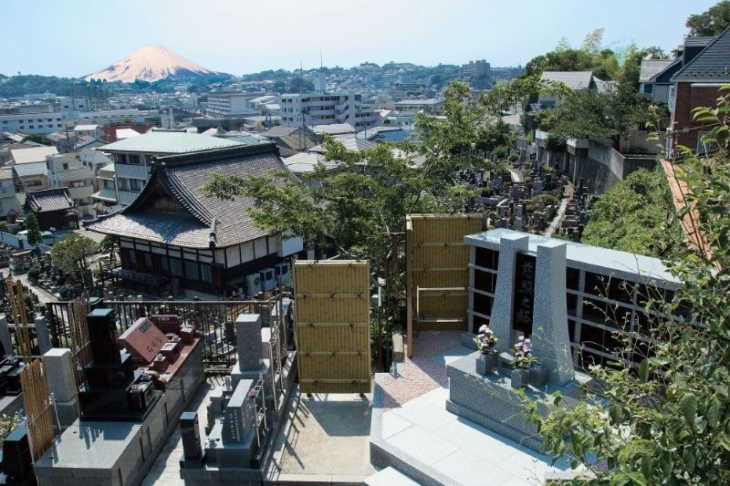 墓地は緑に囲まれた山手の丘陵地にあり霊峰富士を望む見晴らし良い立地です。海照寺正門より境内の墓地を通り抜け、山手の丘陵地にある霊園中にあります。墓地は宗教不問でどなたでもご利用頂けます。