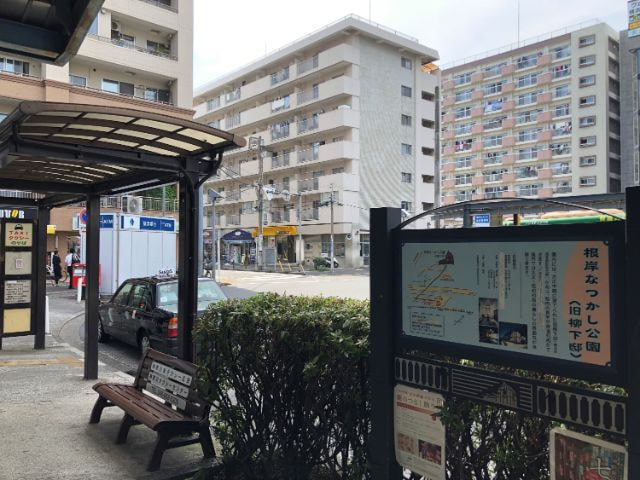途中、根岸なつかし公園(旧柳下邸)の前を通り過ぎ、根岸坂下公園の前も通過するとまもなく目的地となります。