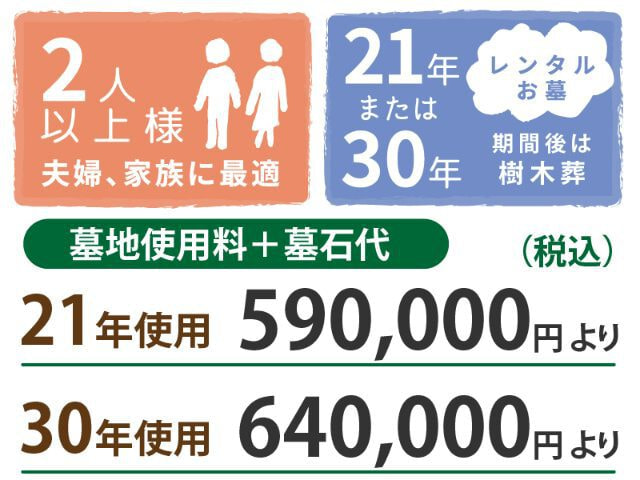 墓地使用料+墓石代 21年使用 590,000円より/30年使用 640,000万円より