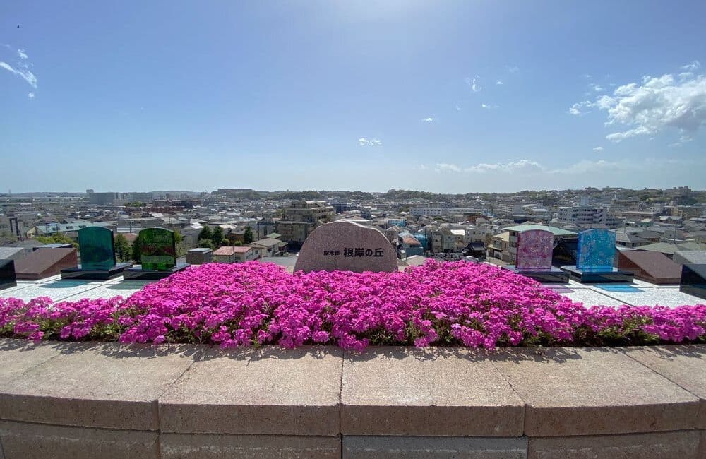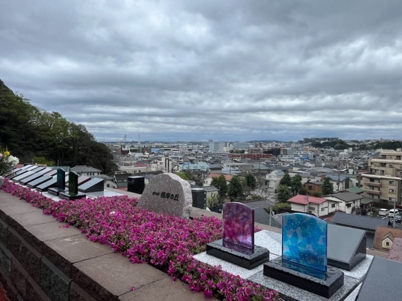 芝桜の左右に各4区画の計8区画を「光り墓」区画として用意しました。すでに光り墓石を設置している4区画は、戒名彫刻をするだけで安価にお求めいただける区画です。