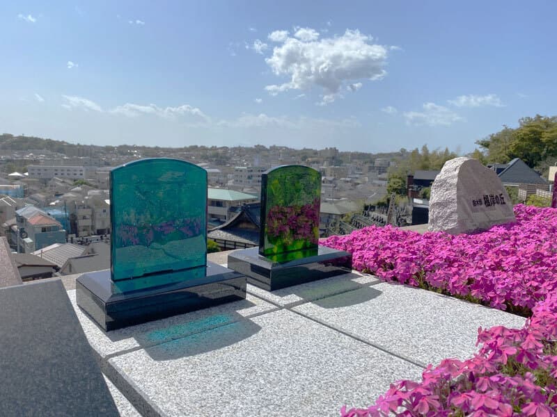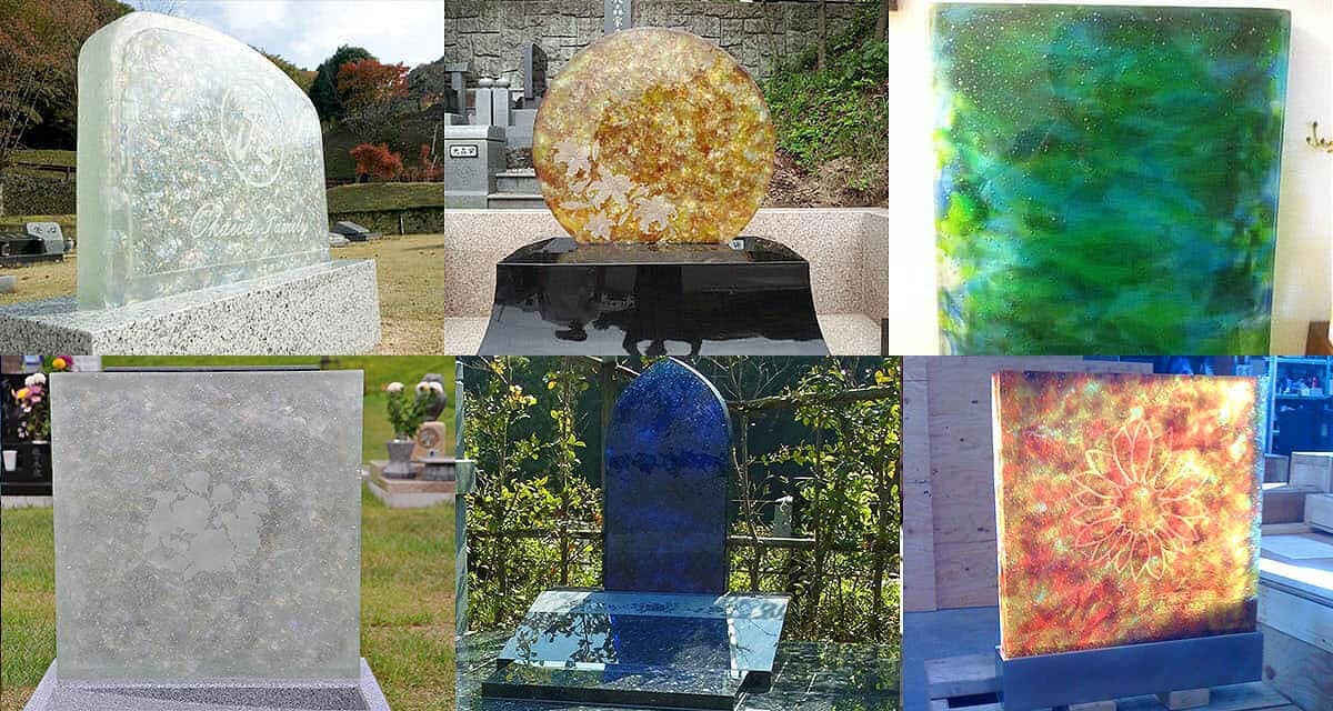 光り墓とはガラス職人が1枚1枚丁寧に製作した芸術的なガラスを用いた墓石です。天然石とは異なりお好みの色合いで製作することが可能です。天然石にはない、ガラス特有の「透明感」「光り」「輝き」が故人への想いを表す世界に一つのモニュメントになります。